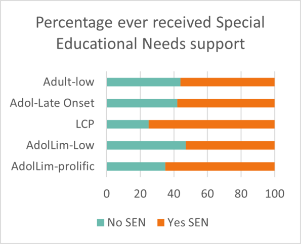 - were receiving special educational needs support in the LCP compared to other re-offending trajectories.