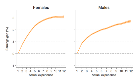 Figure 2: Academic-Vocational gap in earnings growth by experience